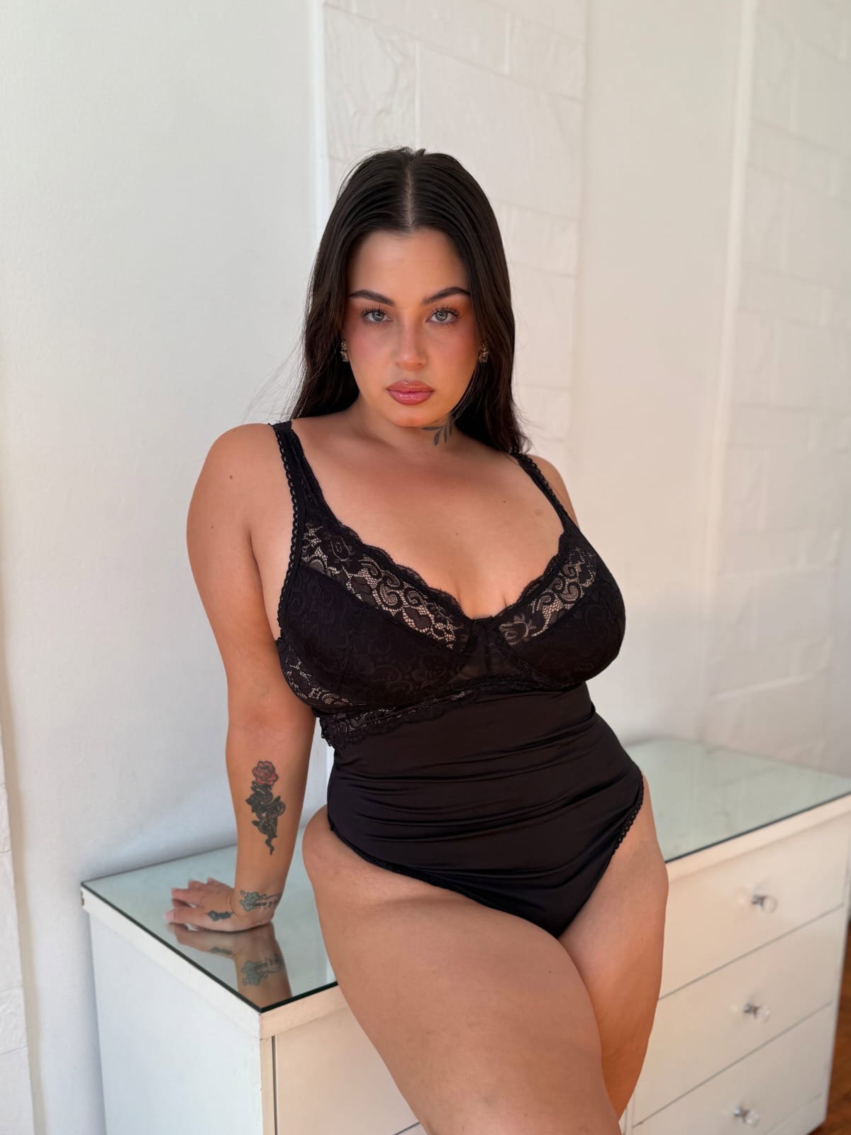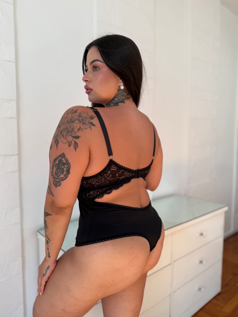 Body de Lycra con detalles de puntilla.